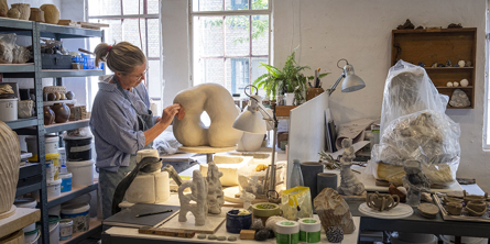 Selve besøget begyndte med et besøg hos Vendsyssel – fritid for alles keramikunderviser, Joan Grønfeldt, der har sit eget pottemagerværksted. Allerede her begyndte de gode snakke med inspiration fra både fag og lokaler.