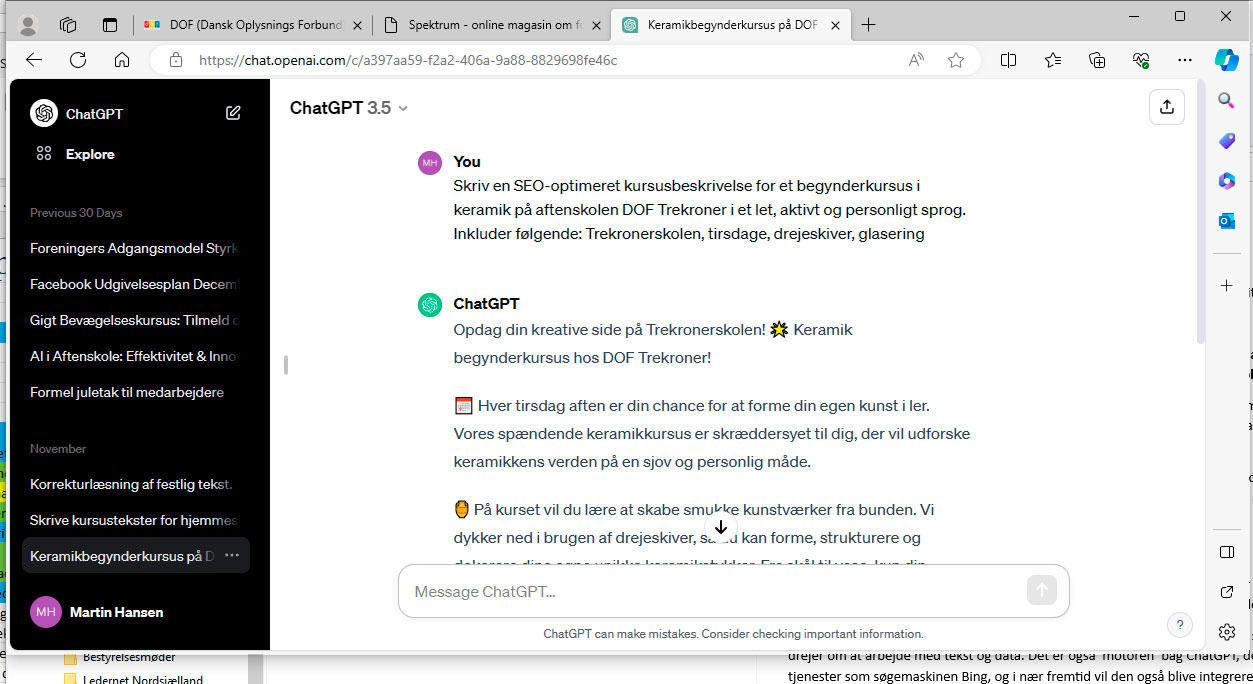 5. Når du prøver dig frem, opdager du ret hurtigt, at ChatGPT har en del begrænsninger, men også, at den hurtigt kan give gode bud.