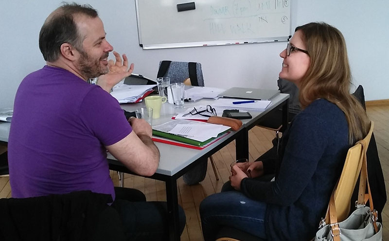 De har undervist i sprog på aftenskolen i over 20 år og har i 10 år arbejdet med efteruddannelse af voksenundervisere. De afholder kurser for undervisere både på Studieskolen og for en samlet lærergruppe på skolerne.